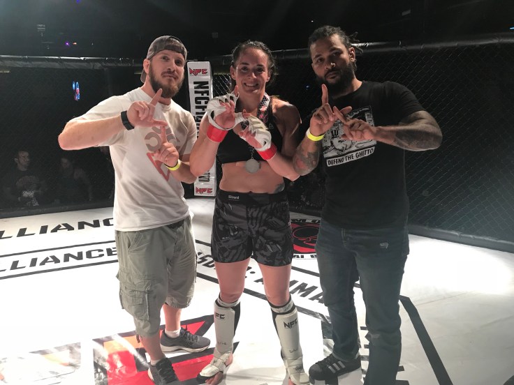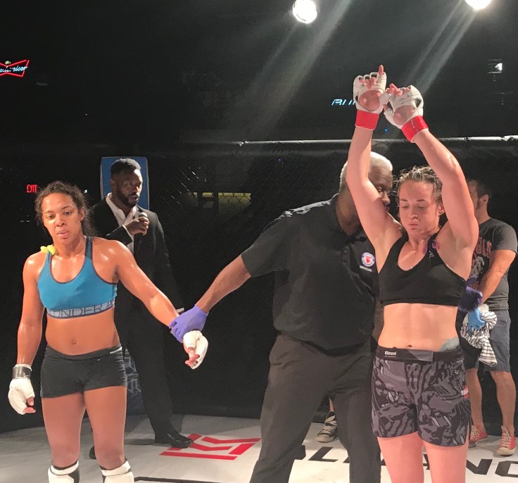 Champions Training Center’s Melanie Carter won via submission in the 3rd round over a more experienced opponent in her MMA debut. Fighting a tough girl from SBG Athens, Melanie used superior wrestling and Jiu Jitsu to control her opponent and eventually secure the rear naked choke in the 3rd.